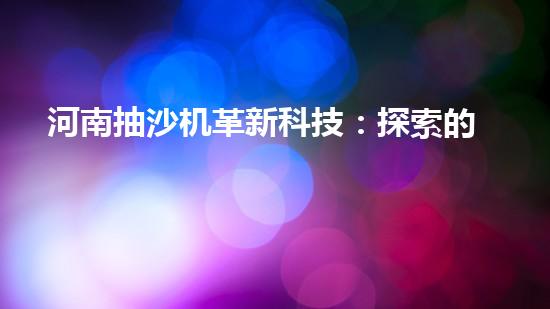 河南抽沙機革新科技:探索的未來?